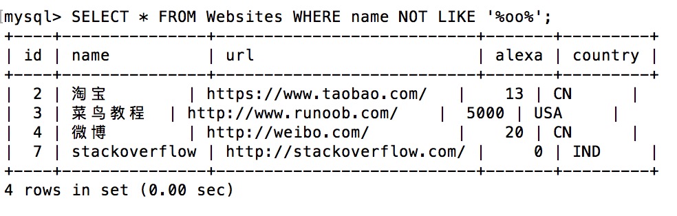 下面的 SQL 语句选取 name 不包含模式 "oo" 的所有客户: