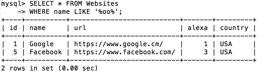 下面的 SQL 语句选取 name 包含模式 "oo" 的所有客户: